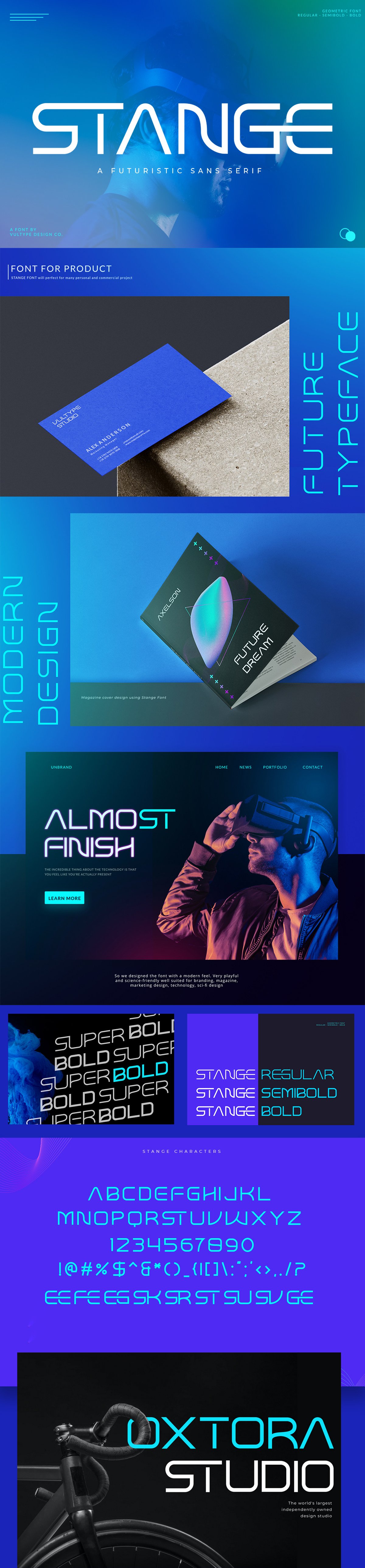 Stange – Free Typeface is a font with a futuristic edge, geometric corners, perfect for technology theme. As with its Stange, Stange makes a strong impression in print, headlines, video, and social media – whether paired with a contrasting typeface or on its own.