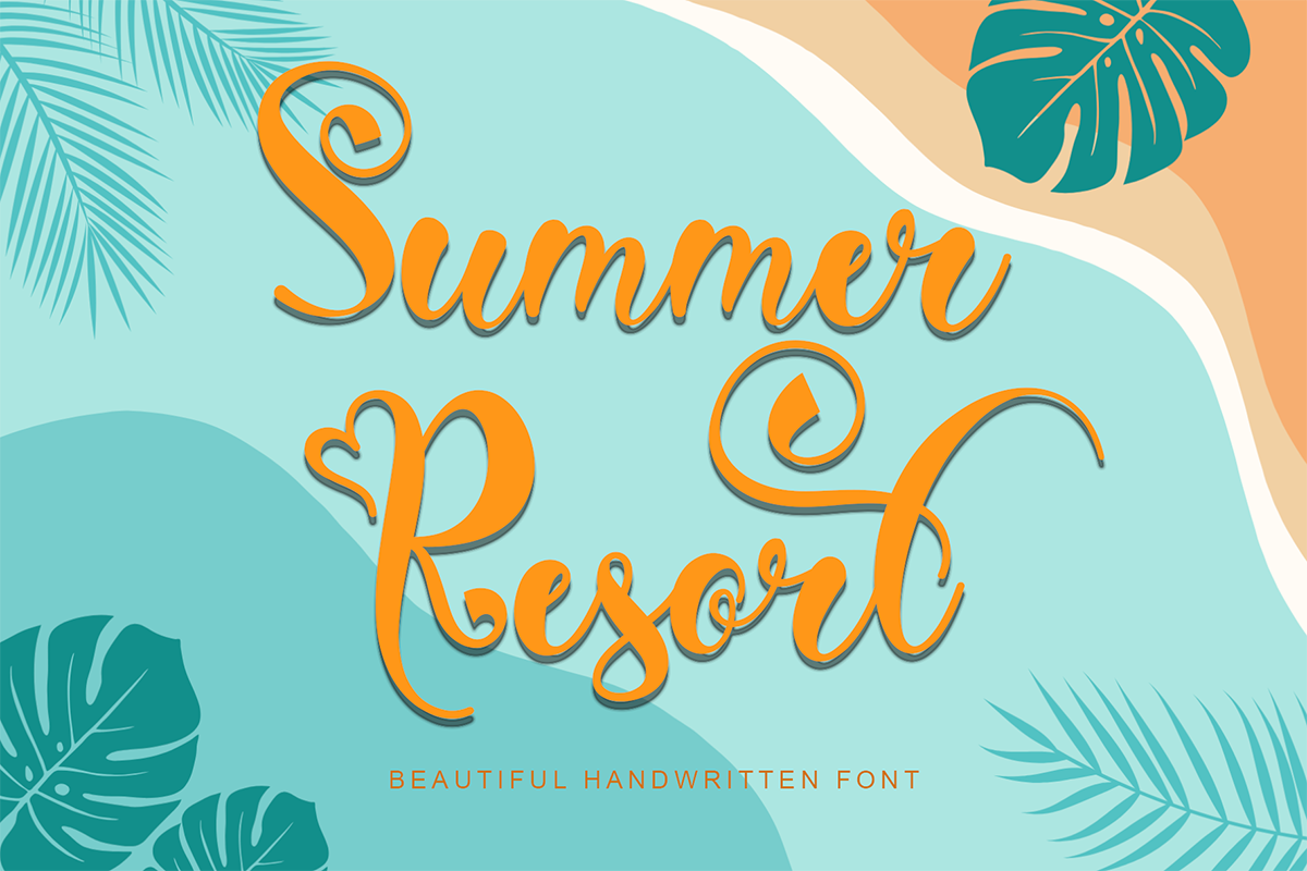 Summer Resort – Script Font is a beautiful and elegant handwritten font. This font is equipped with uppercase, lowercase, numerals, punctuations and multilingual support. It is suitable for summer, vacation, holiday, spring, invitations, logos, stickers, posters, prints, camping and others.