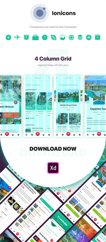 TravelGuide Free App UI Kit is a navigation & directory interface Kit available and editable in Adobe XD. The kit comes with a unique styling to begin design projects for mobile app. The idea is to keep the interface simple and understandable. Using a lot of colors can confuse the user, especially the first-timers. Therefore, Mint comes with white-space to maintain focus and for important actions/selections.
