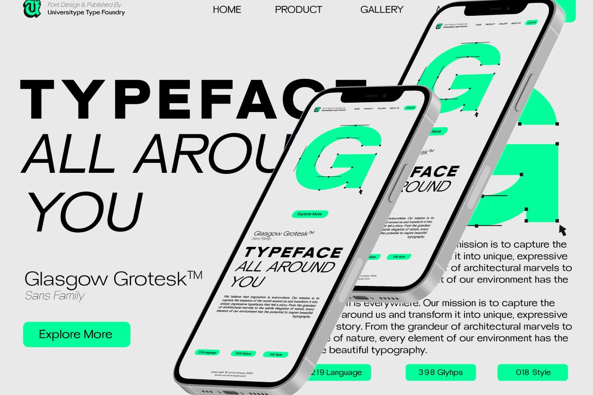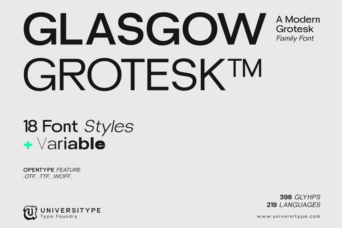 Thanks to Universitype for sharing with us this exquisite font! However, this UT Glasgow Grotesk is only a demo version available for personal use. So, if you want to access more its full features and license, go get the premium version as well!