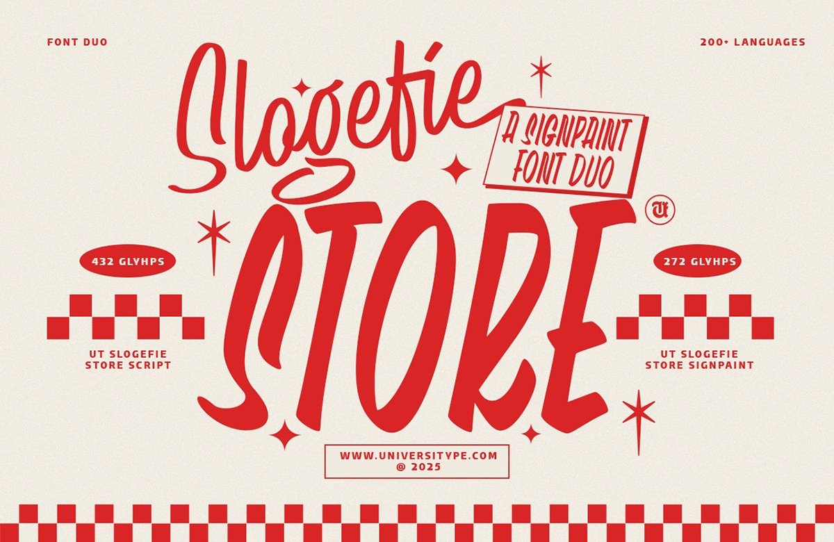 Thanks to Universitype Foundry for sharing with us this exquisite font! However, this UT Slogefie Store Font Duo is only a demo version available for personal use. So, if you want to access more its full features and license, go get the premium version as well!
