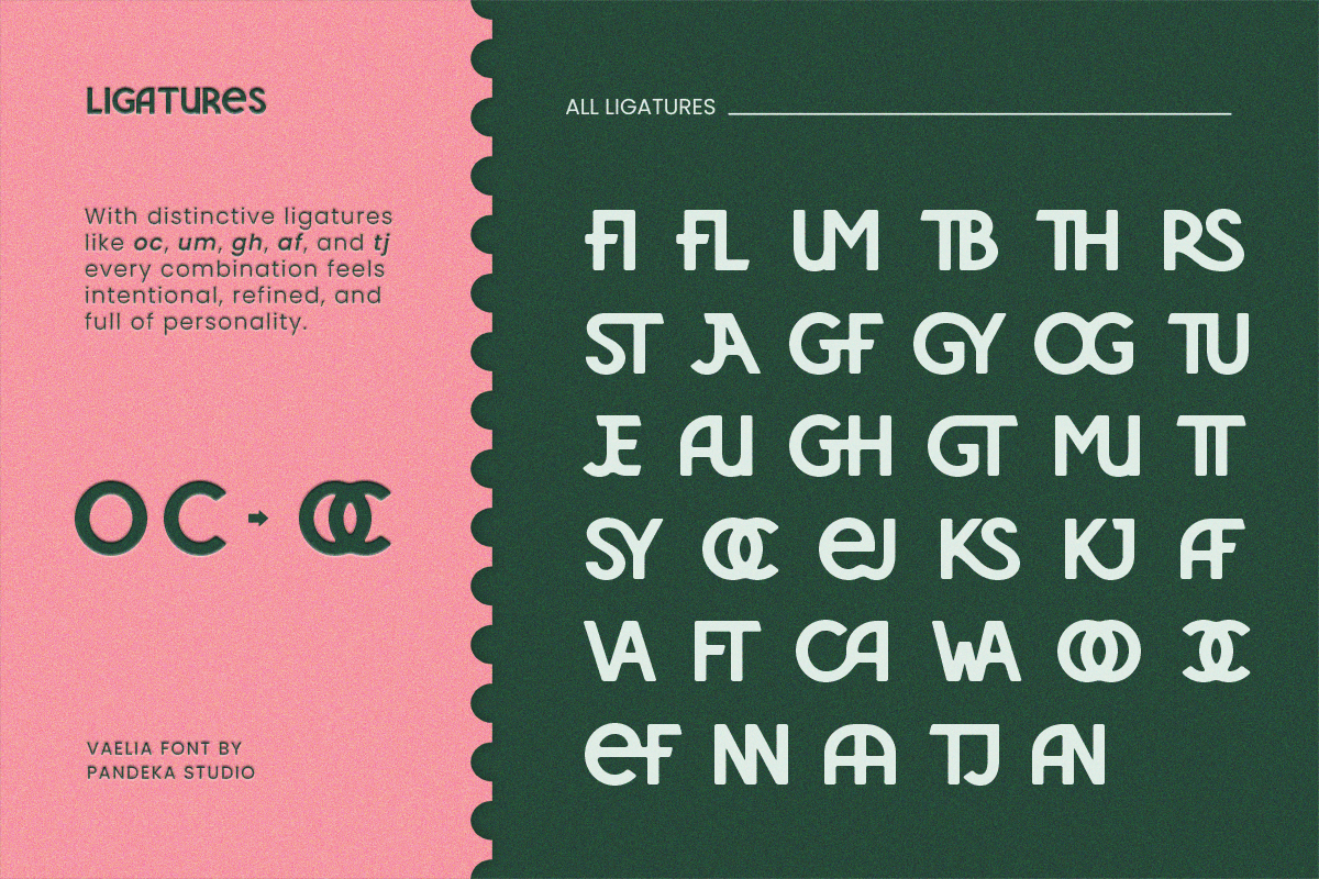 Vaelia – Display Font is a bold, nature-inspired font with a modern twist. Designed for creatives who want to infuse elegance, organic charm, and high visual impact into their branding, packaging, and editorial work. With rounded letterforms, stylish alternates, and a handcrafted touch, Vaelia brings botanical beauty and standout personality to any design. Ideal for fashion brands, eco-product packaging, Instagram content, and lifestyle campaigns.