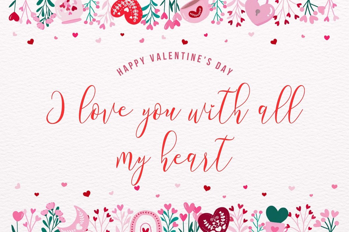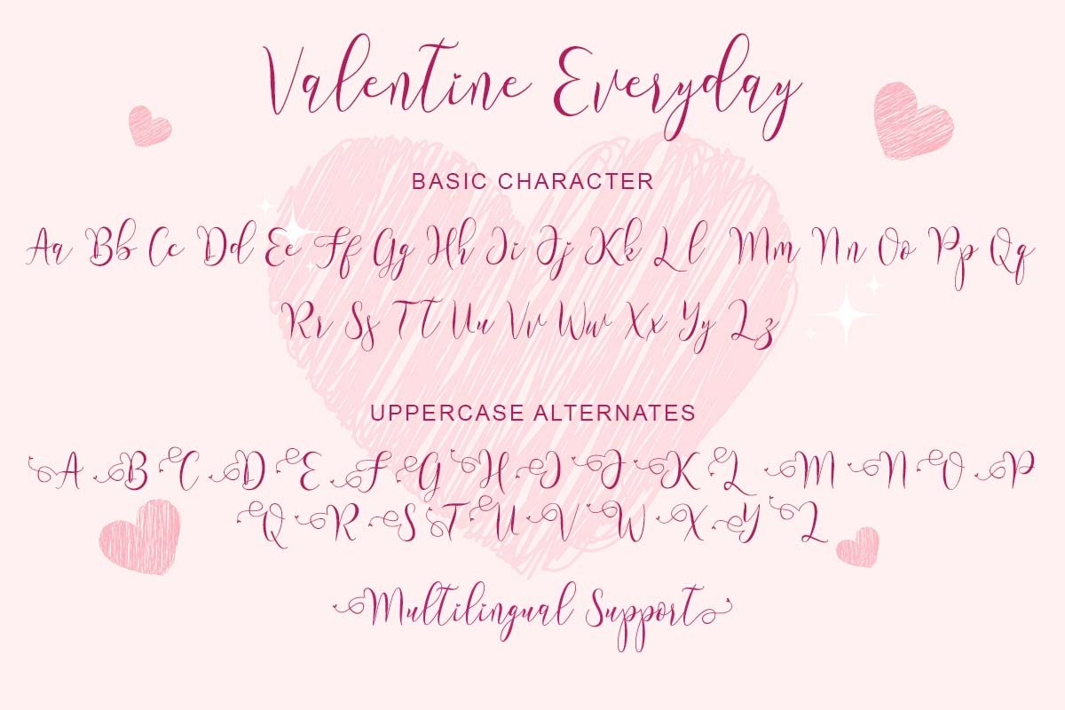 Valentine Everyday Script is a beautiful and elegant script font with heart decorations. This font is suitable for Valentine’s Day, Christmas, winter, spring, weddings, logos, and many others. This font is PUA encoded, which means you can access all of the glyphs and swashes with ease!