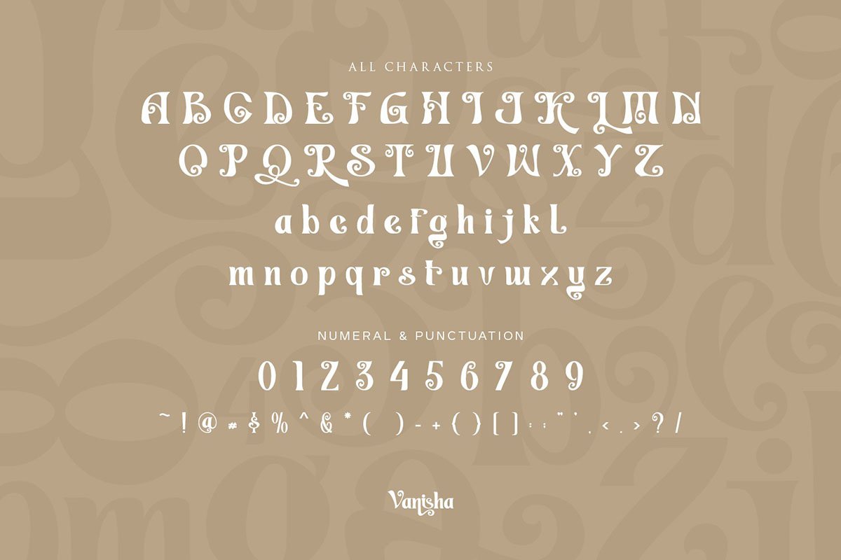 Vanisha – Modern Serif Font is a display font with beautiful ligatures, tons of special alternative glyphs, ornament and multilingual support. It’s a very versatile font that works great in large and small sizes. It is a very versatile font, covering a wide range project types, from branding projects, Logo design, Clothing Branding, product packaging, magazine headers, to wedding invitations, to branding, poster design and so much more.