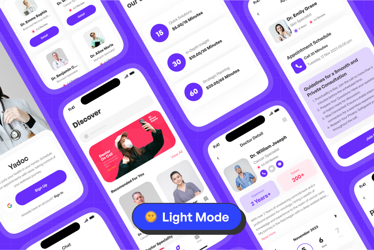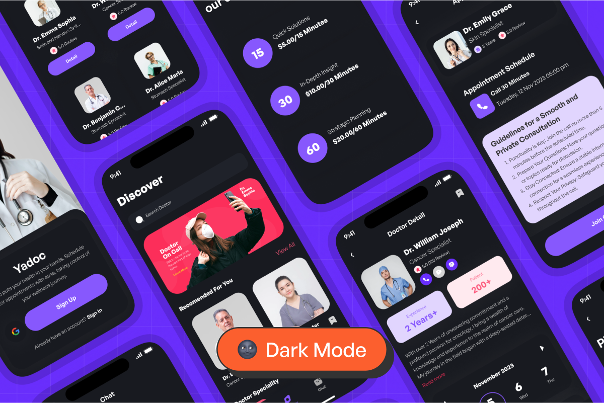 Elevate your healthcare app with Yadoc – Doctor Appointment UI KIT! Yadoc is a premium UI Kit designed for seamless integration and enhanced user experience. Yadoc streamlines the doctor appointment process, offering a sleek and modern design. With a range of fully functional components, customize your app effortlessly for both iOS and Android platforms. Ensure a user-friendly journey for patients and healthcare providers alike, making appointments and managing healthcare needs a breeze. Yadoc’s 100% editable and customizable elements simplify the design process, giving your project a cutting-edge look and feel.